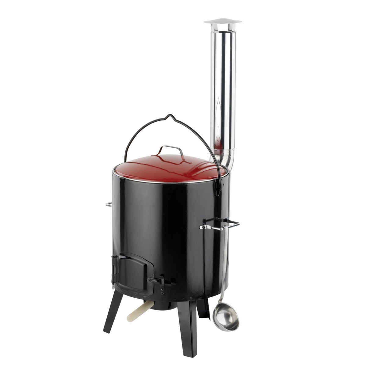 Pohodové chvilky venku s přáteli nemusí být vždy jen o grilování. Více a více oblíbené se stávají oslavy, při kterých se připravují tzv. jídla z jednoho hrnce. Může to být tradiční guláš, husté polévky, masa s omáčkou nebo třeba ovar. V tomto kotlíku skvěle připravíte i horké nápoje – svařené víno, grog a další alkoholické i nealkoholické dobroty. Na kvalitě záleží, proto je souprava Activa vyrobena z oceli potažené tvrdou vrstvou smaltu, což přispívá k velmi dlouhé životnosti a odolnosti proti prorezavění. Smaltem je samozřejmě ošetřený i objemný 14 litrový kotlík, poklice a rovněž celé topeniště. Komín je potom vyveden v trvanlivém nerezu. V topeništi můžete topit jak dřevěným uhlím, dřevem nebo briketami, tak například i plynovým hořákem. Součástí soupravy je i nerezová naběračka a velký odnímatelný popelník. Jak celý kotel, tak i vnitřní kotlík jsou vybaveny madly pro snadné přenášení a manipulaci.