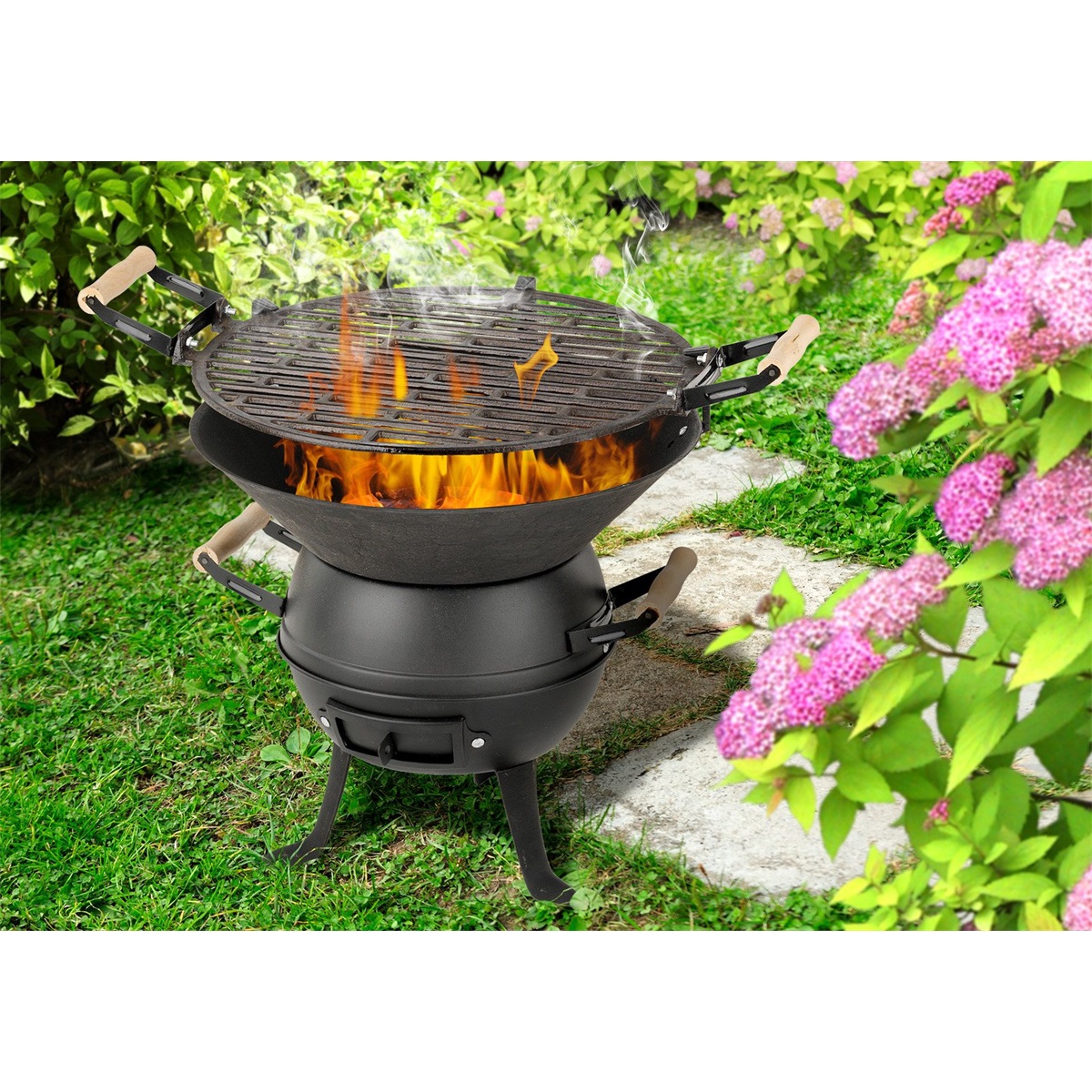 Valencia je ideální gril pro malé zahrádky, balkóny nebo terasy. Na rozdíl od levných napodobenin z plechu je celé telo grilu vyrobeno z poctivé litiny, takže Vám gril bude sloužit po mnoho let. Z litiny je vyroben i grilovací rošt, nastavitelný do 4 poloh a rošt topenište. Intenzita žáru se ovládá regulacní klapkou na spodu nádoby. Jak samotný gril, tak i rošt jsou opatreny velkými madly s drevenými rukojetmi pro snadné prenášení a manipulaci. Po odejmutí vrchního roštu je možno tento gril využít i jako malé ohnište. Kvality grilu Valencia, jeho bezpecnost a zpracování potvrdil prestižní nemecký zkušební institut certifikací GS.