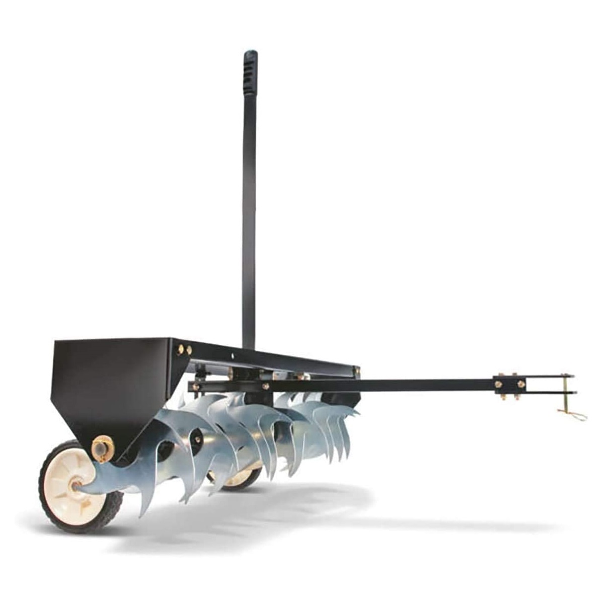 Tažený provzdušňovač se záběrem 102 cm, 10 hvězdicových nožů se 120 hroty a pojezdovými koly pro transport.Případné bezpečnostní pokyny, výstrahy a upozornění jsou součástí návodu k obsluze, který je k dispozici v sekci KE STAŽENÍ.