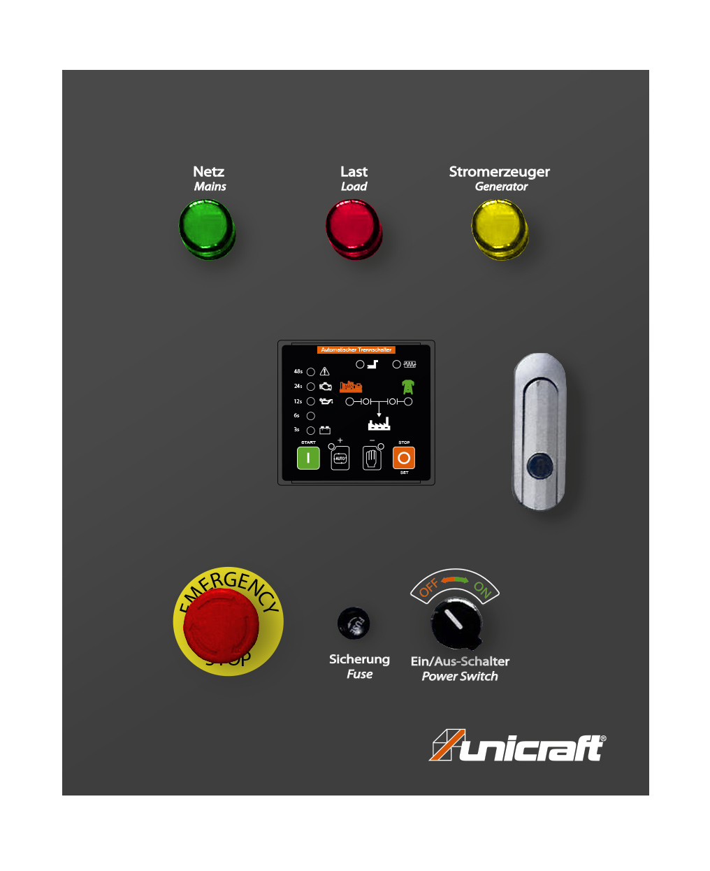 - Při výpadku proudu spínač do 30 sekund automaticky spustí elektrocentrálu
