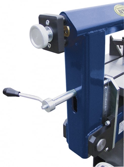 - Přísuv obrobku upnutého na stole se provádí pomocí ruční páky