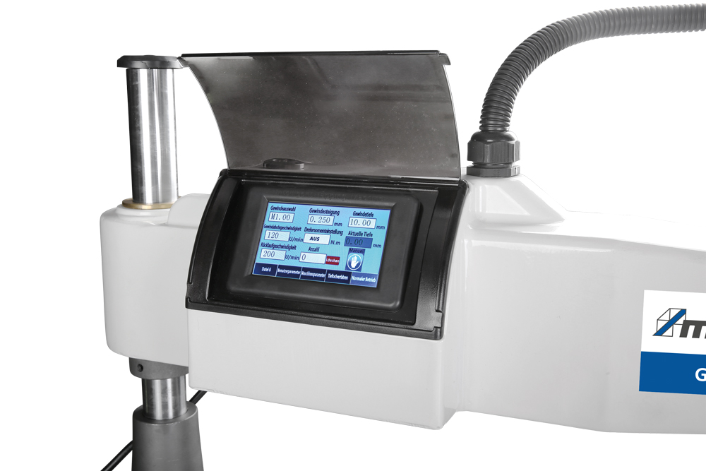 - Nastavení velikosti závitu, otáček, stoupání, hloubky řezu pomocí dotykového displeje