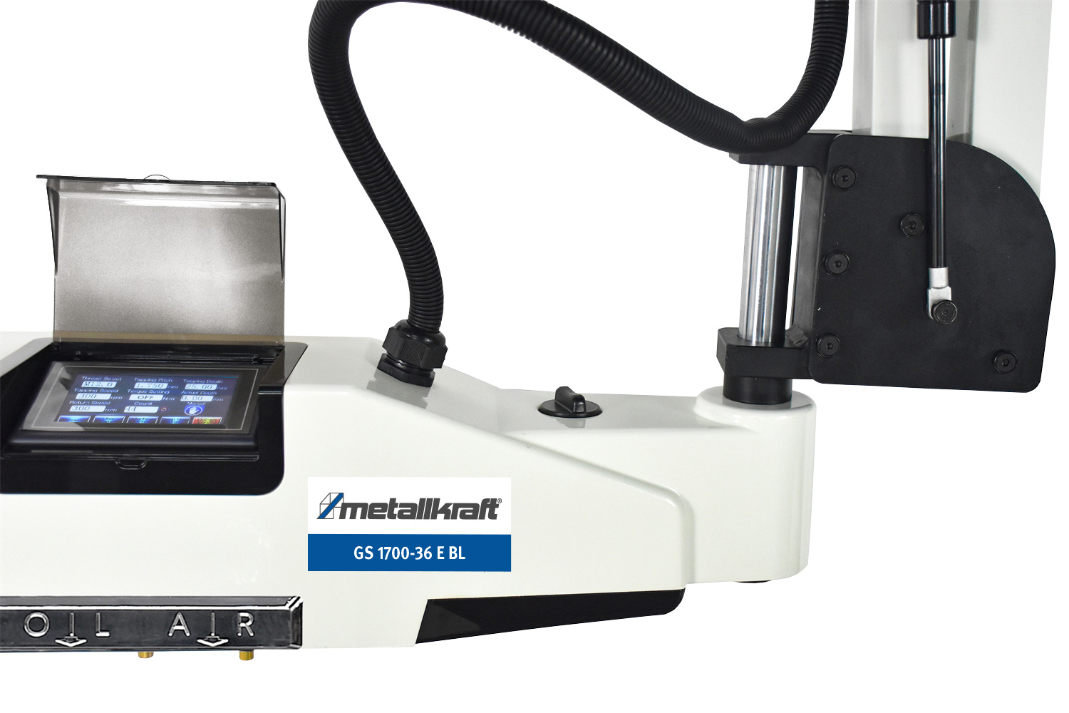 - Automatický provoz: Po dosažení nastavené hloubky řezu se stroj automaticky přepne do zpětného chodu - ideální pro závitování více slepých otvorů