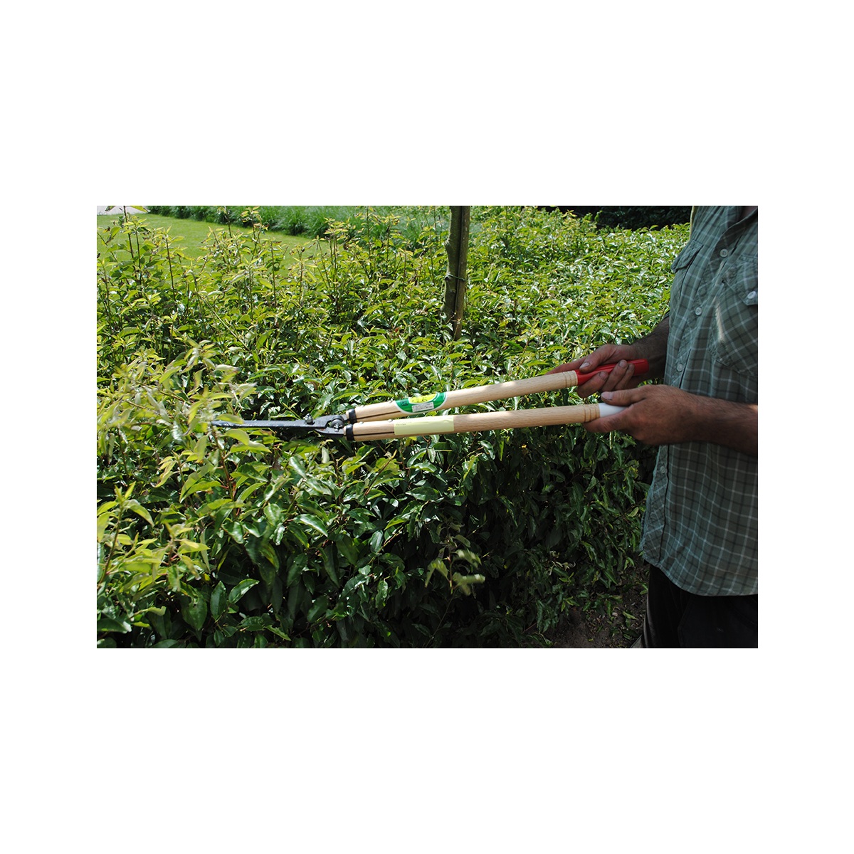 Nůžky jsou vybaveny 50 cm dlouhými dřevěnými rukojeťmi, které poskytují výborný pákový efekt při střihu. Čepele o délce 175 mm jsou naostřeny ve dvou úhlech, což zajišťuje hladký, čistý a tichý střih s minimální námahou. S hmotností 1 040 g jsou navíc nůžky velmi lehké a dobře vyvážené, což oceníte zejména při delším používání.