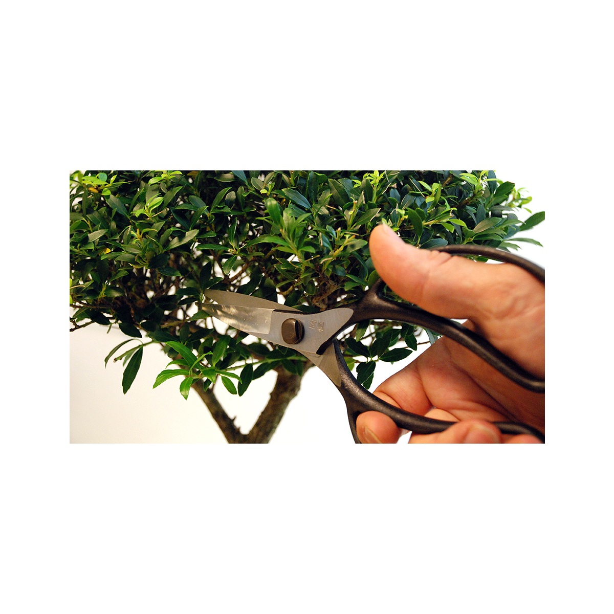Bonsai – doslova „strom v misce“ – je umění trpělivosti, preciznosti a harmonie. Kromě klidné mysli jsou však při tvarování bonsají zapotřebí i kvalitní nástroje, které dokážou pracovat s maximální přesností. A jedním z takových jsou právě tradiční japonské bonsajové nůžky Okatsune 221 s krátkými, tenkými čelistmi, které umožňují snadný přístup i do těsného vnitřního prostoru koruny. Jendá se o nejmenší model z této řady bonsajových nůžek.
