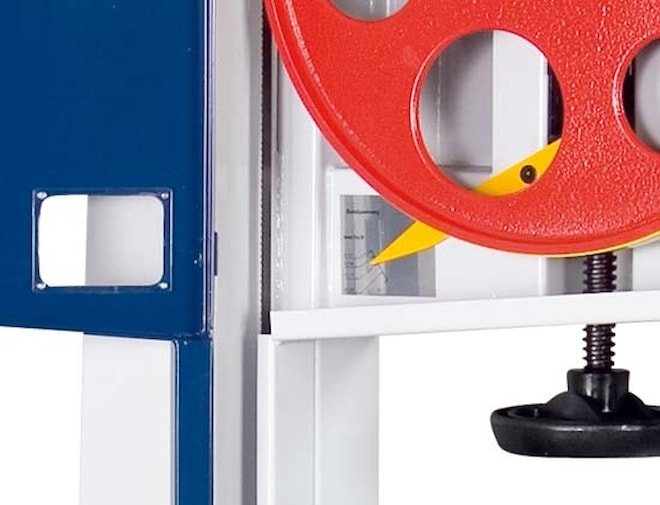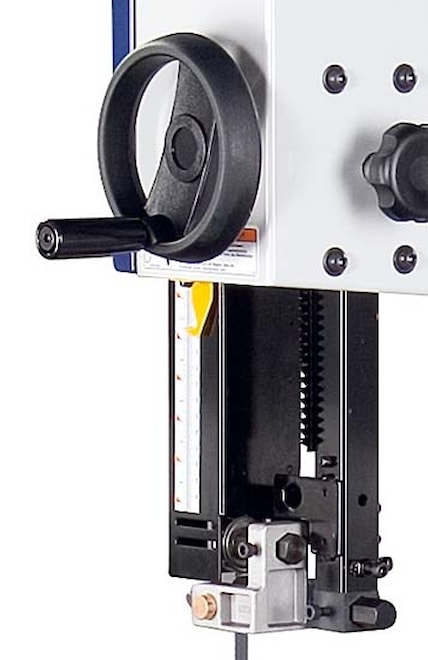 - Rychlé přestavení výšky řezu pomocí otočného knoflíku a ozubené tyče s milimetrovou stupnicí