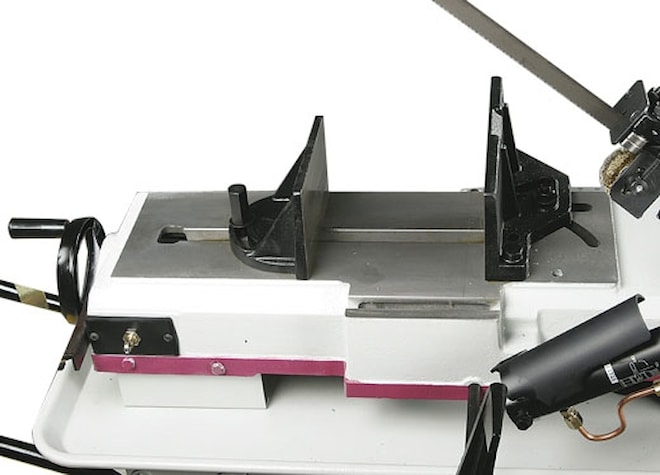 - Tři rychlosti pilového pásu 45 / 65 / 77 m/min měnitelné pomocí převodovky s ozubenými koly