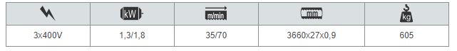 - Třífázový motor s dvojitým vinutím, 2 řezné rychlosti. Tepelná ochrana motoru.