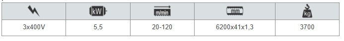 - Rozsah rychlosti pohybu pilového pásu 15 – 150m/min.