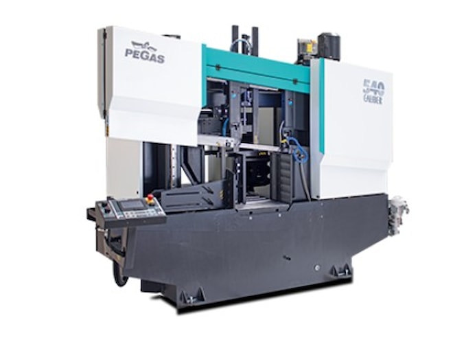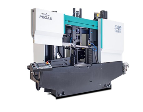 - Vysoce produktivní automatická dvousloupová pásová pila s vícenásobným podáváním materiálu.