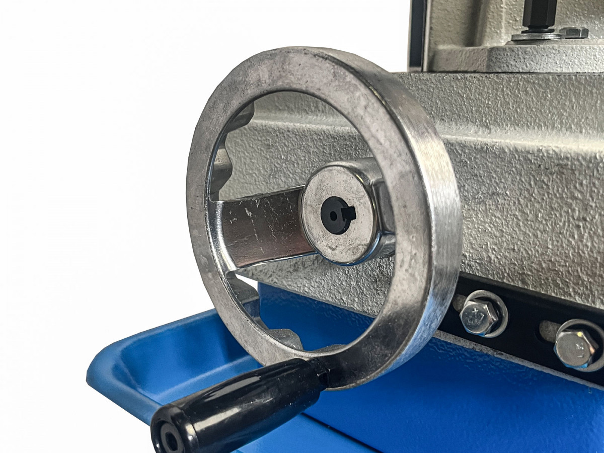 Mobilní pásová pila PMS 180/300 MOBIL umožňuje nastavit plynulý řezný výkon díky gravitačnímu válci s regulačním ventilem pro řízené klesání ramene do řezu.