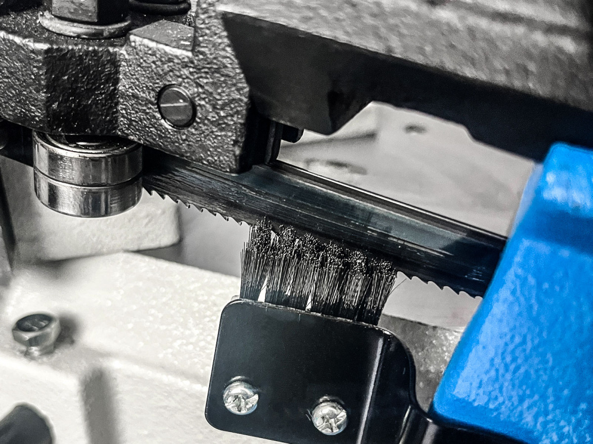 Pila má volně uložený čistící kartáček, který vynáší ocelové třísky ze zubové mezery pilového pásu, a tím prodlužuje jeho životnost. Kartáček lze výškově nastavit dle jeho postupného opotřebení.