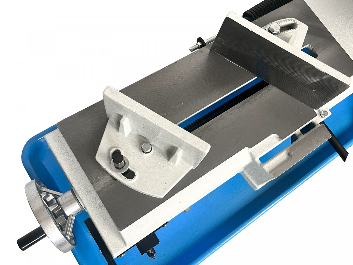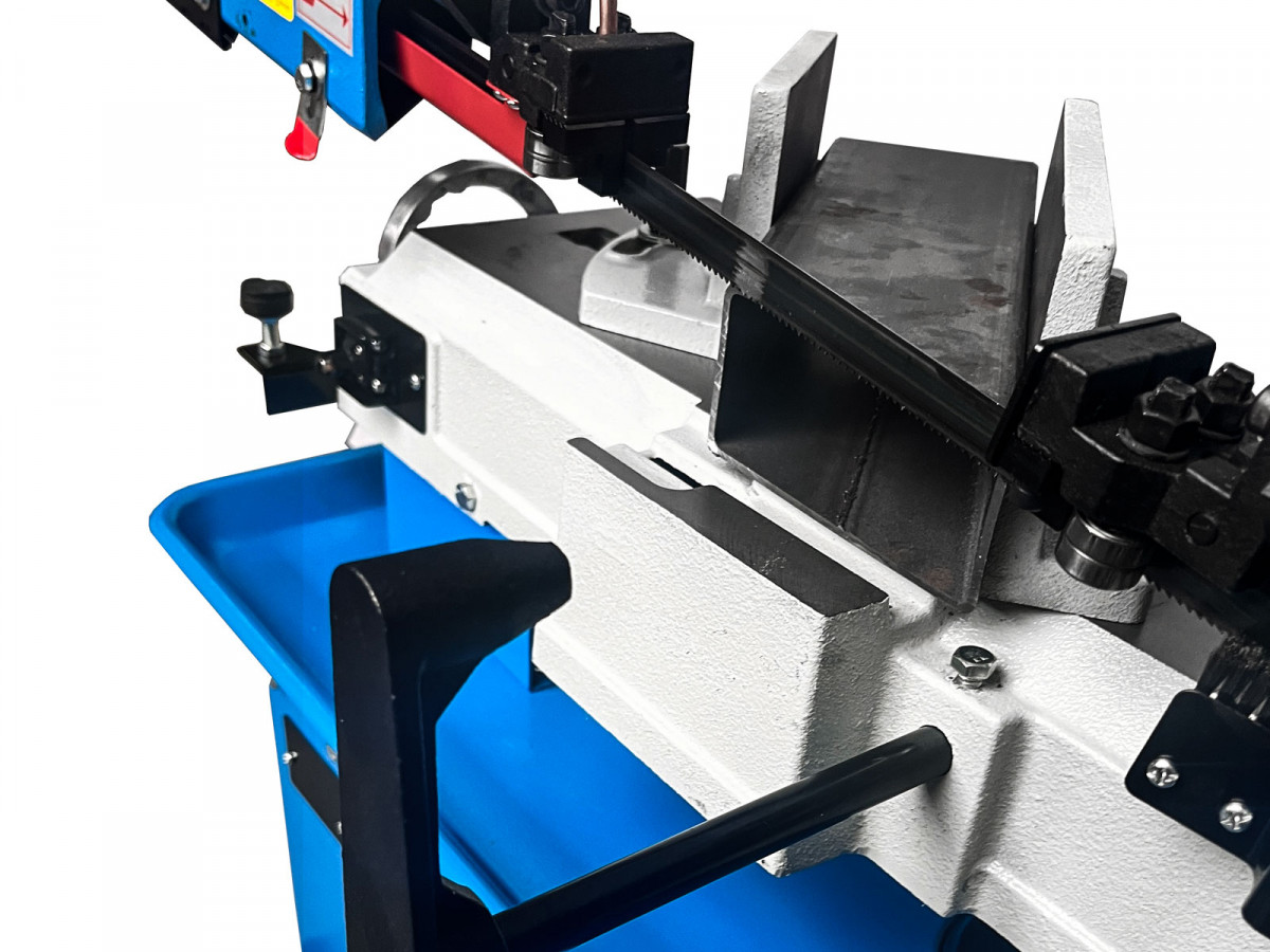 Pohyblivou čelist svěráku na pásové pile lze přesunovat rychle a ručně před řezaný materiál za pomocí systému QUICK-VISE nebo za pomocí upínacího kola svěráku. Nastavení čelistí pro danou šířku materiálu je tedy velmi rychlé, kdy obsluha nemusí přestavovat šířku sevření jenom na šroubovici svěráku za pomocí upínacího kola. Čelisti lze vytočit na levou stranu do úhlu 45° s pevnou fixací za pomocí šroubů.