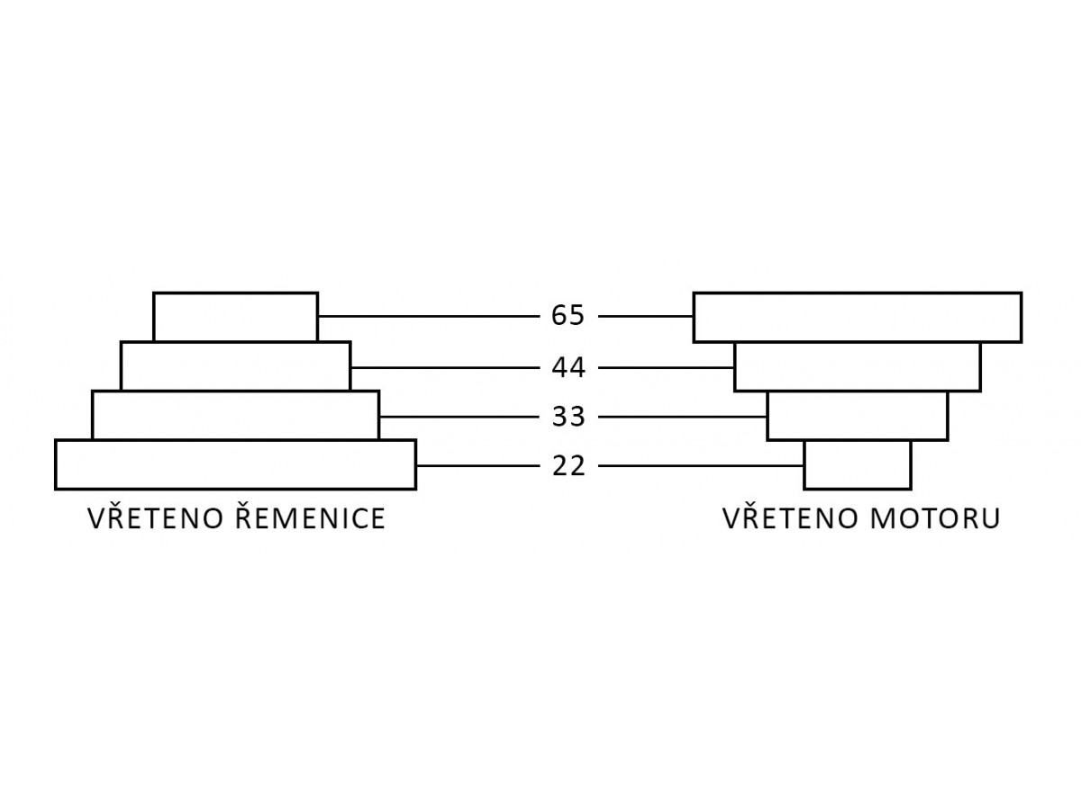 Spolu s možností jednoduchého přestavení klínového řemenu, který spojuje motor a převodovku, lze nastavit až čtyři různé rychlostí pásů za minutu a to 22/33/45/65 m/min. Variabilita nastavení řezné rychlosti a posuvu do řezu na této pásové pile, umožňuje zvýšit přesnost řezu a životnost pilového pásu pro velkou variabilitu velikostí a jakostí řezaného materiálu.