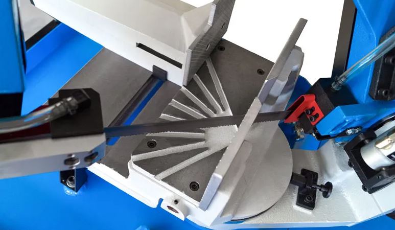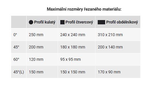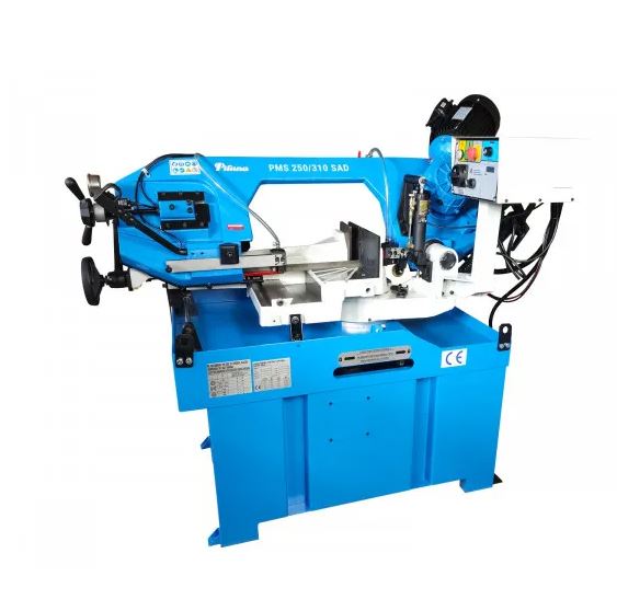Gravitační pásová pila na kov PMS 250/310 SAD-V je vybavena hydraulickým válcem, který plynule řídí klesání do řezu a také invertorem - plynulá regulace otáček. Ruční pásová pila pro řezání jak plných materiálů, tak profilů a trubek kolmo, nebo pod úhlem na jednu stranu do 60°, na druhou do 45°. Rameno pily upevněné na otočném kloubu umožňuje 2 způsoby ovládání: Ruční posuv ramene do řezu pákou s vypínačem, nebo hydaulickým regulovatelným válcem kontrolované padání ramene vlastní vahou. Tvrdokovové vedení pásu. Indikace napnutí pilového pásu.