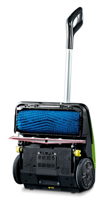- Mycí stroj s válcovým kartáčem a odsáváním špinavé vody poháněný baterií