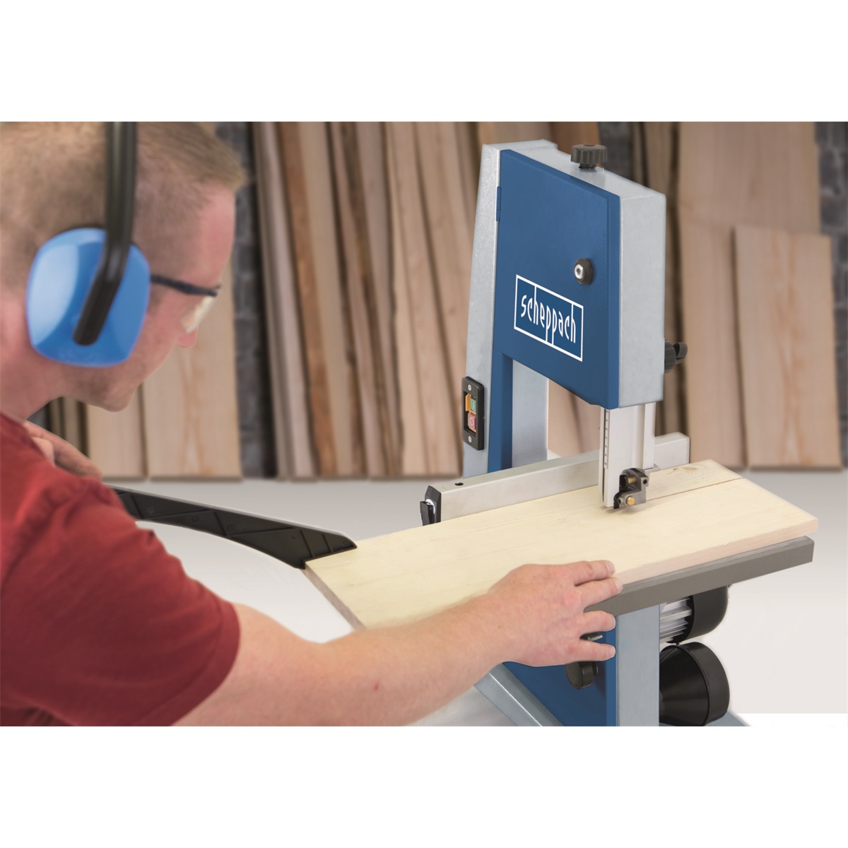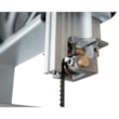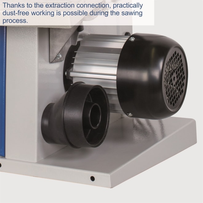 Pásová pila nabízí vynikající řeznou výšku 100 mm a řeznou šířku 195 mm, což ji předurčuje k velmi přesným a čistým řezům i při práci s většími dílci. Samozřejmostí je konektor pro připojení odsavače pilin, který udržuje pracovní prostředí čisté. Úhlové pravítko není součástí balení.
