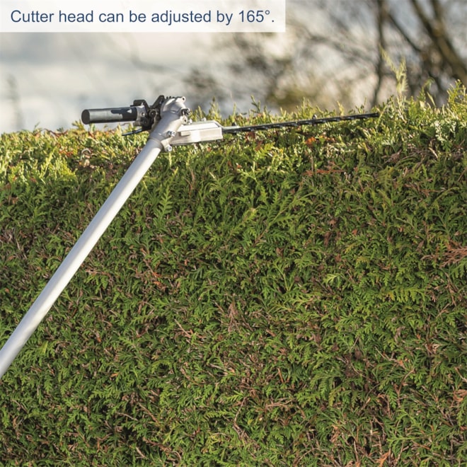 Plotostřih má velký dosah, délku lišty 390 mm a nastavitelný úhel hlavy v 11 polohách. Kvalitní nože vyřezávané laserem a broušené diamantem si poradí s větvemi o průměru až 24 mm.