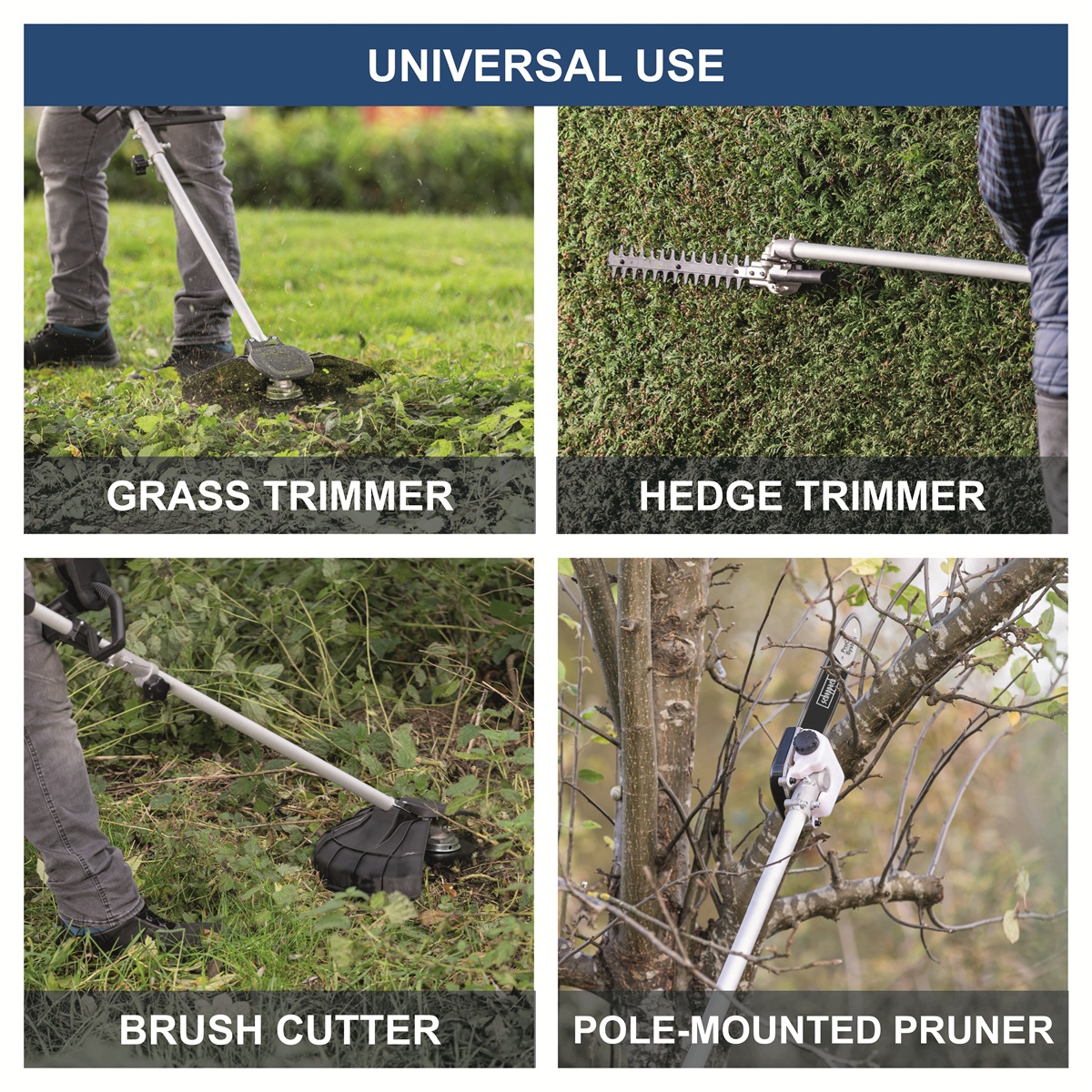 Scheppach BC-MFH400-X zastane práci jako 4 nejoblíbenější zahradní stroje – křovinořez, strunová sekačka, plotostřih a prořezávací pila. Je ideální volbou pro každého, kdo hledá spolehlivý nástroj na komplexní zahradní práce.