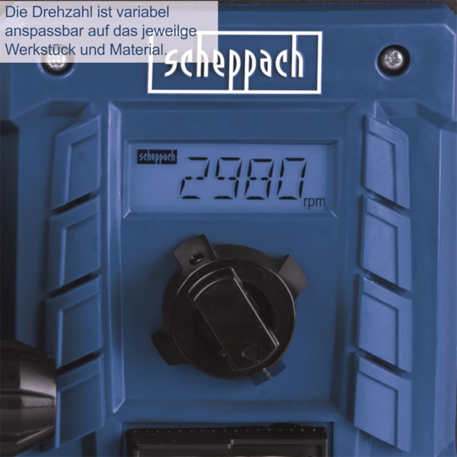 Velkou předností brusky je možnost plynulého nastavení otáček, díky čemuž lze dosáhnout optimálních výsledků při práci s různými druhy materiálů. Aktuální rychlost je přehledně zobrazena na LCD displeji, takže máte nad broušením vždy plnou kontrolu.
