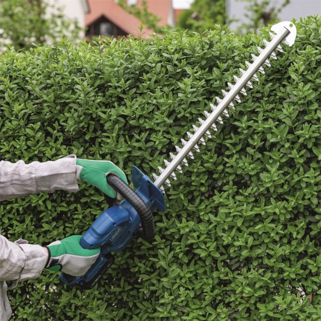 Nůžky jsou vybaveny výkonnou čepelí o délce 560 mm, která nabízí 2400 střihů za minutu a umožňuje tak přesný střih až do délky 510 mm. Jsou vhodné pro větve do průměru 16 mm, což z nich činí ideální nástroj pro pravidelnou údržbu zahrady. Ergonomické rukojeti s měkkým povrchem zaručují pohodlné držení a snadnou manipulaci. Součástí balení je ochranný kryt na lištu, který usnadňuje bezpečné skladování. Navíc mají nůžky integrovaný držák pro zavěšení na zeď, takže se dobře skladují. Tyto akumulátorové nůžky na živý plot vám usnadní zahradní práce a zaručí skvělé výsledky při minimálním úsilí. Stroj se dodává bez baterie a nabíječky.