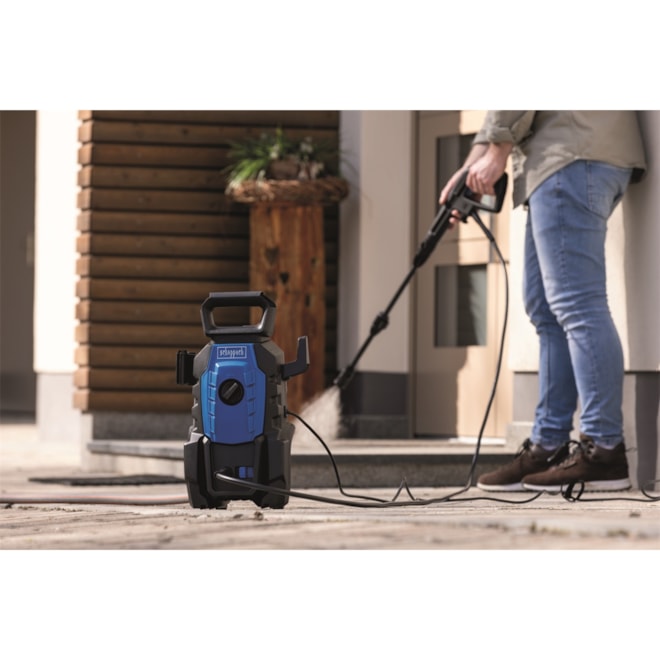 Tlaková myčka Scheppach HPC 1400 je lehká a kompaktní myčka, se kterou lehce zvládnete většinu běžných úklidových prací kolem domu nebo dílny. Umytí auta, kola, zahradního nábytku, květináčů nebo zahradního náčiní a techniky se stane hračkou. S váhou pouhých 5 kg se s myčkou snadno manipuluje, přičemž silný motor o výkonu 1400 W je schopný vyvinout maximální tlak až 110 barů. Pro snadnou obsluhu jsou připojovací prvky a hadice vybaveny rychlospojkami. Základní příslušenství, jako tlaková pistole a hadice se dají při skladování pohodlně umístit přímo v držácích na myčce. Myčka je vybavena čerpadlem se samonasávací funkcí. Myčku tak lze připojit nejenom ke kohoutku s tlakovou vodou, ale myčka si může sama nasávat vodu z kbelíku, sudu nebo z jiné nádrže. Nejste tak při mytí omezeni dostupností vody z běžného vodovodního řádu. Stroj je rovněž vybaven systémem Auto stop, kdy se při uvolnění spínače na tlakové pistoli rovněž vypíná motor.
