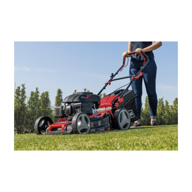 Benzínová sekačka Scheppach MS 225-53 je ideální stroj pro středně velké a větší pozemky. Je navržena na těžkou práci, dlouhou životnost, ale nezapomíná ani na všechny praktické a komfortní prvky usnadňující práci. Základem je široký záběr 53 cm a velmi silný motor o objemu 224 cm3, který si dobře poradí i s vyšší nebo vlhčí trávou, popřípadě s trávou s příměsí silnějších a houževnatějších plevelů. Tráva se s touto sekačkou může zpracovávat několika způsoby. Buď ji lze klasicky sbírat do objemného koše nebo (pomocí standardně dodávaného mulčovacího klínu) trávu mulčovat a vpravit jako hnojivo zpět do půdy nebo lze trávu vyhazovat bočním otvorem do strany nebo zadním otvorem dozadu. Sekačka má pevné ocelové šasi, heavy-duty značkovou převodovku GT Transmission, větší zadní kola pro snadnou manévrovatelnost, objemný koš s indikací naplnění, snadné centrální nastavení výšky sečení jedním pohybem páky, ergonomická, nastavitelná měkčená řídítka, přední madlo a trysku pro snadné čištění žacího prostoru. V případě převozu nebo skladování stroje se hodí snadno složitelná řídítka. Se záběrem 53 cm posekáte za hodinu zhruba 1600 m2.