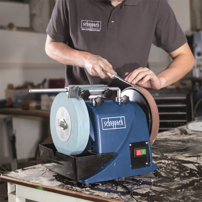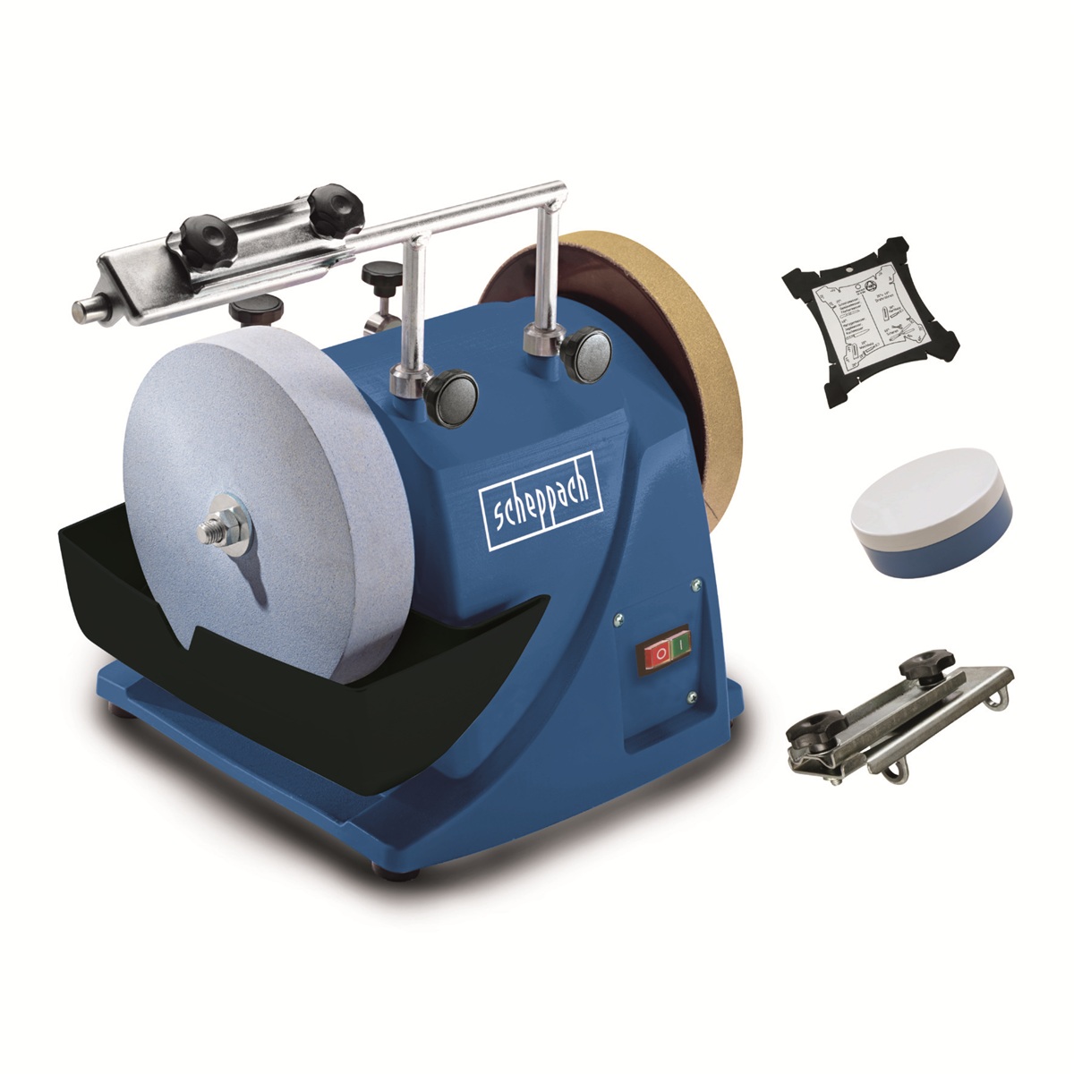 Brousicí systém Scheppach TiGer 2000s využívá princip mokrobroušení pomocí pomaloběžného brusného kotouče a koženého honovacího kotouče. Je ideální volbou jak pro domácí použití, tak i pro menší dílny či provozovny, kde je vyžadována vysoká přesnost ostření. Správné broušení nástrojů bývá náročné a každá chyba může vést k jejich poškození. Tento systém však díky vodicím pouzdrům pro jednotlivé typy nástrojů (nože, dláta, sekáče aj.) umožňuje dosáhnout profesionálních výsledků i úplným začátečníkům. Vodicí pouzdra zajišťují správný úhel ostření a usnadňují práci.