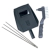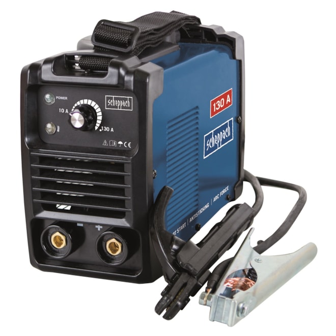 Svářecí invertor Scheppach WSE 860 je kompaktní, lehká a snadno ovladatelná svářečka, ideální pro svařovací práce v garáži, dílně, kolem domu nebo na chalupě. Je dodáván v praktickém setu, který obsahuje vše potřebné k okamžitému zahájení práce – kabel se zemnícími kleštěmi, kabel s držákem elektrod, ochranný štít, kladívko na strusku s kartáčem, tři svářecí elektrody (2 / 2,5 / 3 mm) a popruh na rameno. Díky výklopnému madlu se přístroj snadno přenáší.