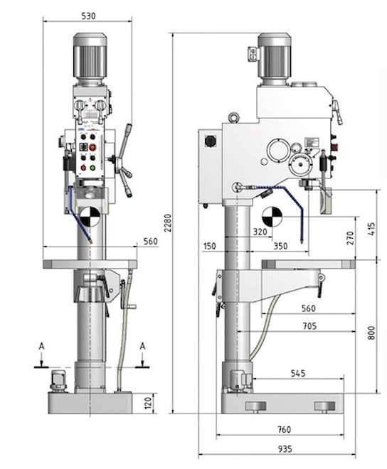 - Max. vzdálenost vřetene a stolu