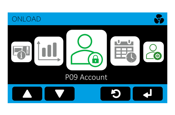 - Počítadlo provozních hodin, které rozlišuje mezi chodem naprázdno a zatížením, umožňuje přesné dodržení intervalů údržby – údržbové upozornění se automaticky zobrazí na displeji po uplynutí daného intervalu