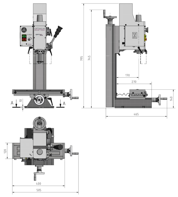 - Max. vzdálenost vřetene a stolu