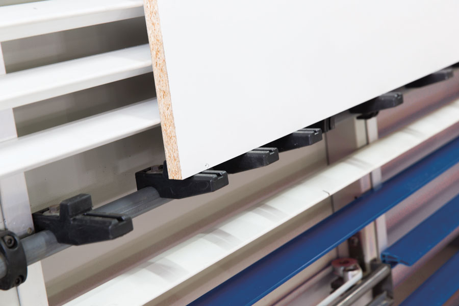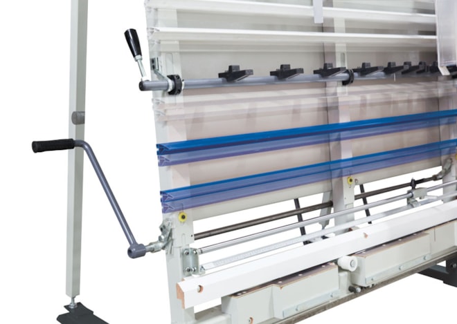 - Střední podpěra obrobku po celé délce stroje
